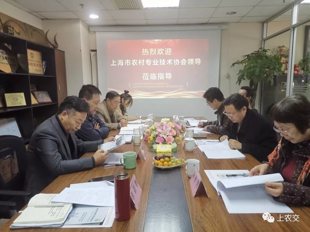 2019年12月9日上午,上海市农业专业技术协会(简称:市农技协)陈德明理事长,上海市农村专业技术协会楼德民秘书长,上海农学会秘书长徐燕芳,上海蔬菜食用菌行业协会秘书长孙占刚一行4人,来上海市食用农产品交流促进中心(简称:上农交)考察调研。上农交主任杨中华等中心团队成员接待,并做了工作汇报。